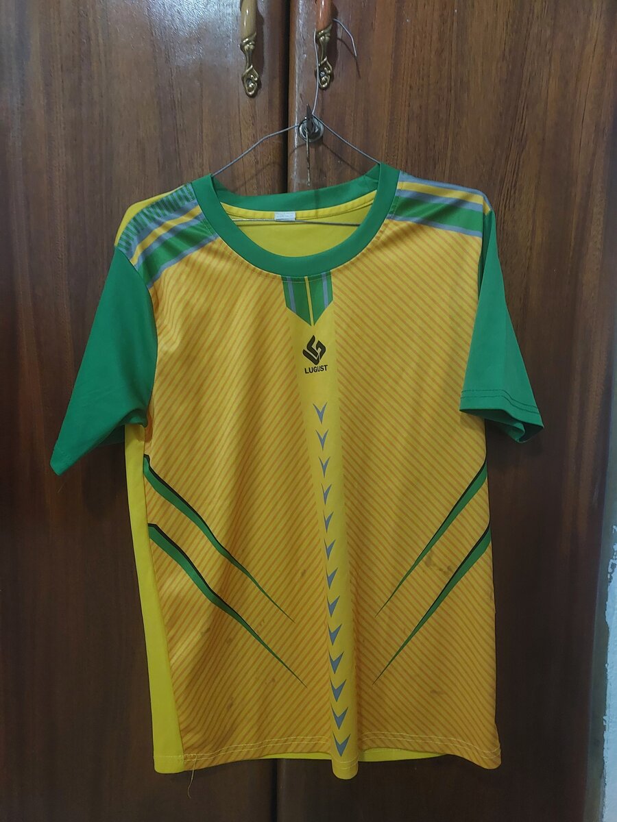 Stay cool and comfortable with this men's sports jersey. Designed in vibrant yellow and green, it's perfect for any sports activity. Lightweight and breathable fabric ensures maximum performance and style. Ideal for both sports enthusiasts and casual wearers.
