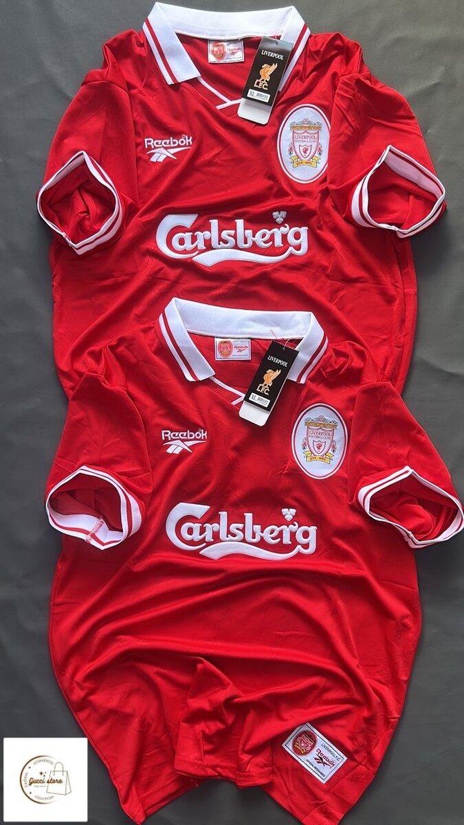 Maillot rétro de Liverpool FC en rouge vif, idéal pour les fans de football et collectionneurs. Un choix parfait pour montrer votre passion pour le club avec son design classique et logo emblématique.