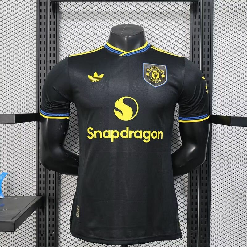 Maillot de football adidas noir pour homme, équipé de logos Snapdragon et d'un emblème de club. Parfait pour les fans de football et les joueurs.