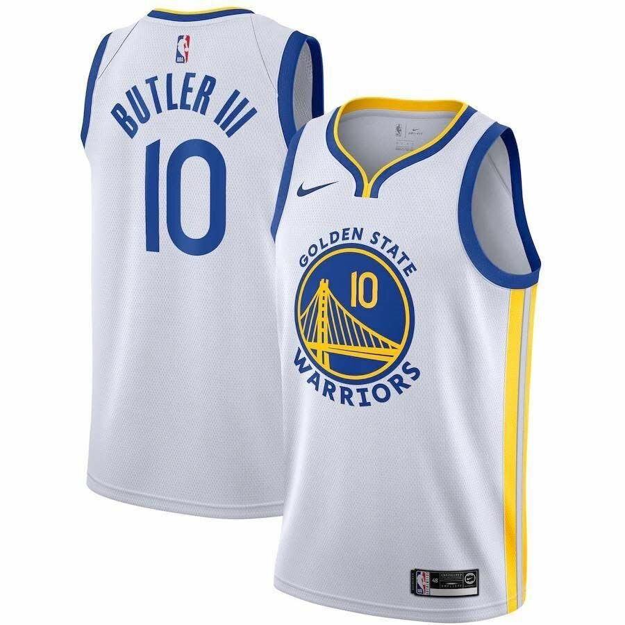 Maillot officiel NBA des Golden State Warriors en blanc, parfait pour les fans de basketball. Tissu respirant et design authentique pour un maximum de confort. Idéal pour afficher votre soutien lors des matchs ou pour un look sportif décontracté.