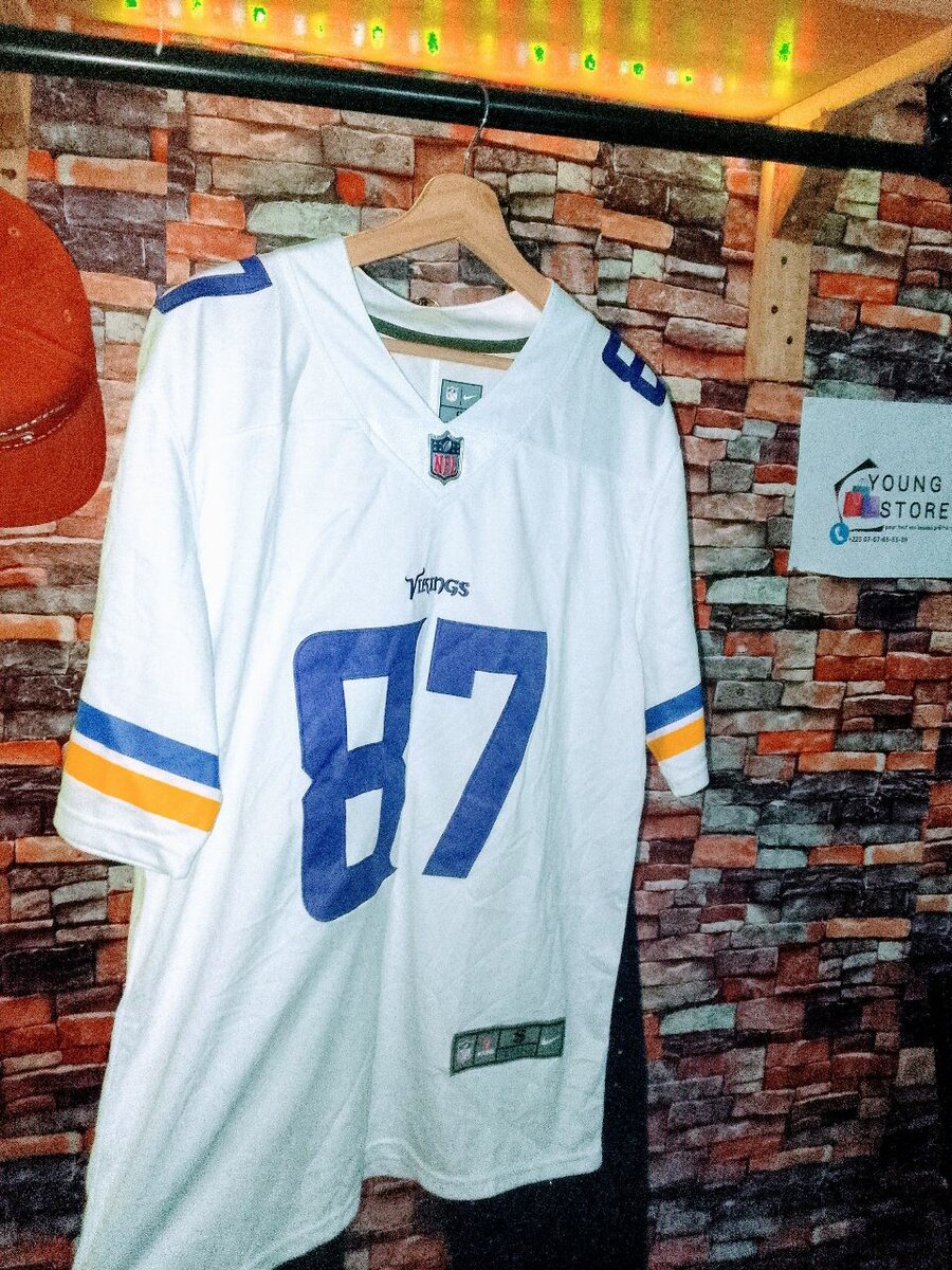 Maillot NFL authentique Vikings avec le numéro 87. Confortable et stylé, idéal pour les fans de football américain. Parfait pour porter lors des matchs ou pour une tenue décontractée.