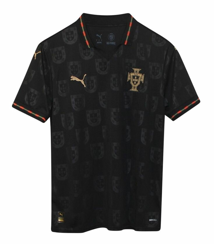Découvrez ce maillot de football édition limitée, conçu pour les fans passionnés du Portugal. Fabriqué en tissu respirant pour un confort optimal, il arbore des accents dorés et les emblèmes iconiques de l'équipe. Idéal pour soutenir votre équipe lors des matchs et événements sportifs.