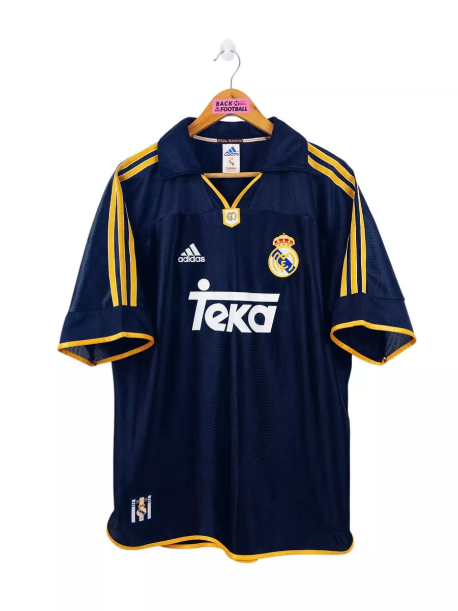 Maillot vintage Real Madrid, couleur bleue avec détails jaune. Confortable et stylé, parfait pour les fans de football!