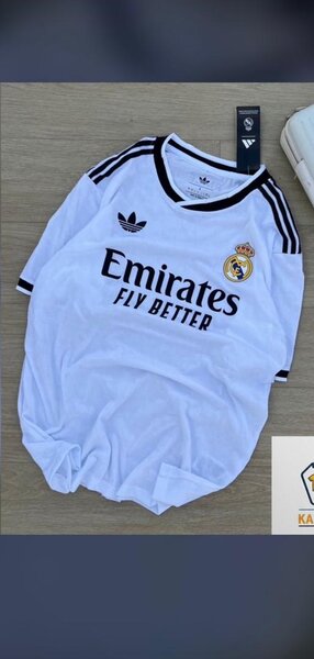 Découvrez le maillot iconique du Real Madrid, parfait pour les fans de football. Confortable et stylé, ce t-shirt blanc à rayures bleues est idéal pour soutenir votre équipe préférée. Faîtes sensation lors de matchs ou pour une tenue décontractée au quotidien.