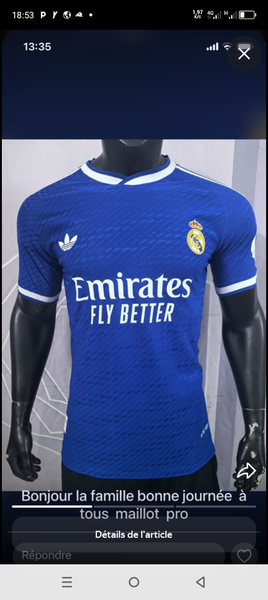 Adoptez le style sportif avec ce maillot Real Madrid bleu. Conçu pour les fans, offrant confort et performance. Parfait pour les matchs ou le quotidien.
