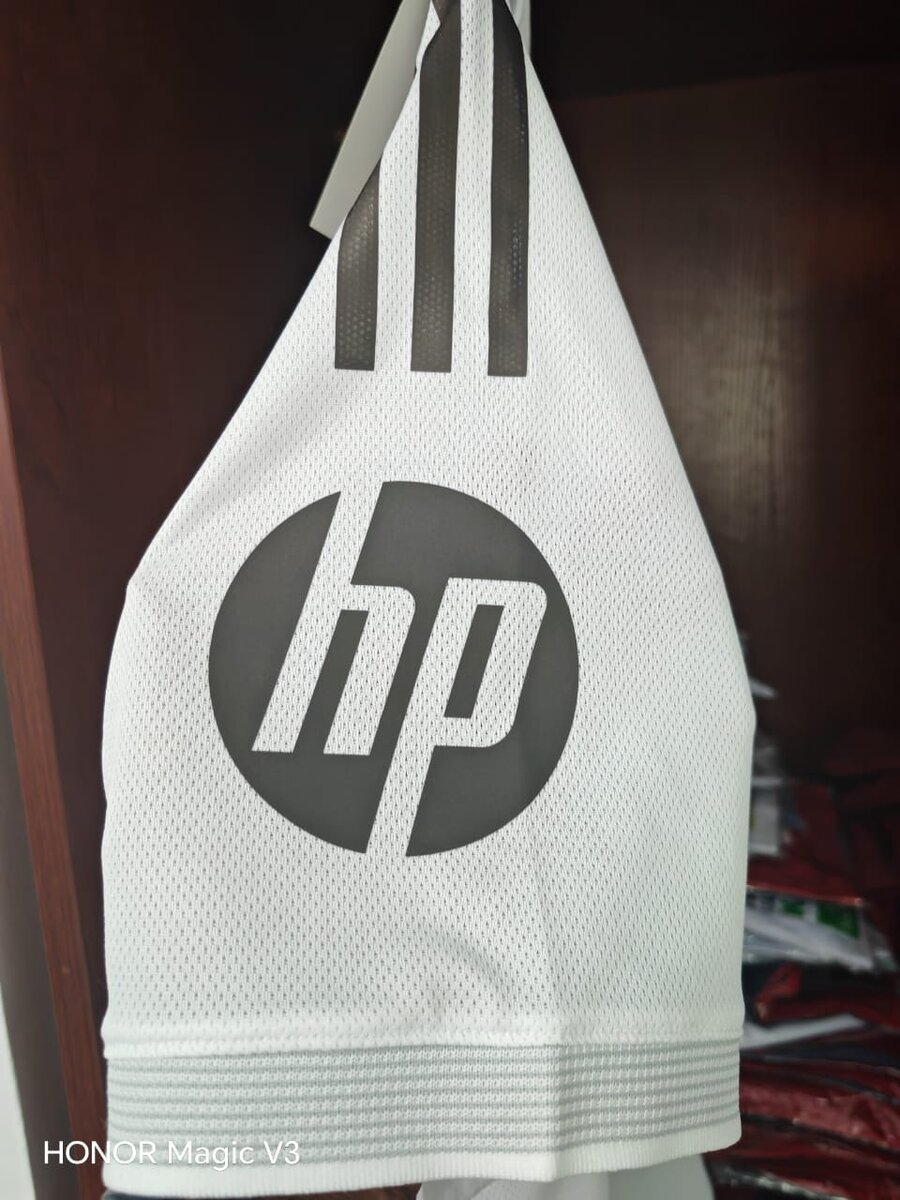 Maillot de football officiel du Real Madrid, idéal pour les fans et les matchs. Confort optimal, logo du club et sponsor visibles. Parfait pour soutenir votre équipe au stade ou à la maison.