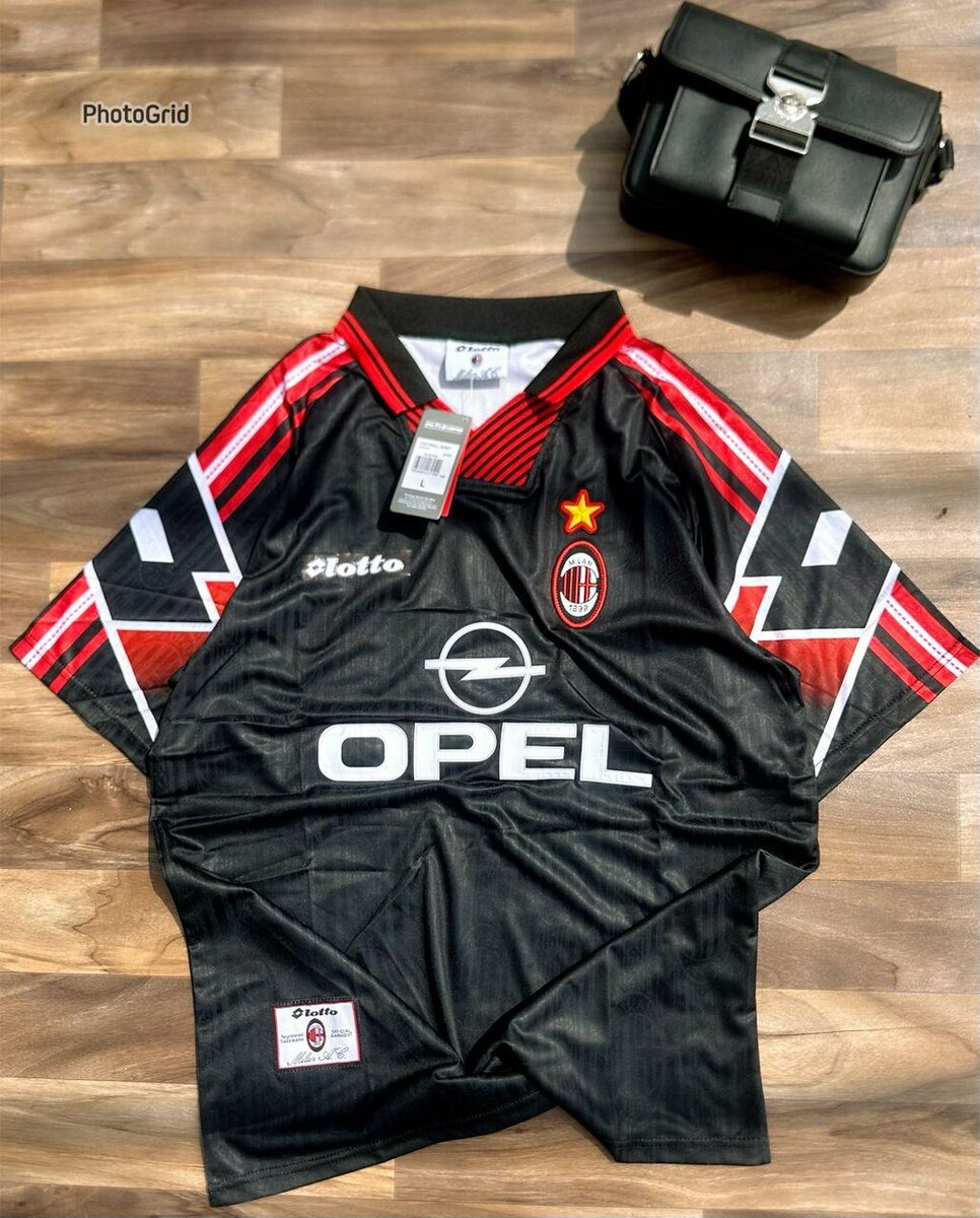 Maillot vintage AC Milan noir pour les fans de football. Conçu pour les supporters exigeants, ce maillot arbore les couleurs emblématiques du club avec des détails graphiques distinctifs sur les manches. Parfait pour les matchs, les événements sportifs ou comme pièce de collection.