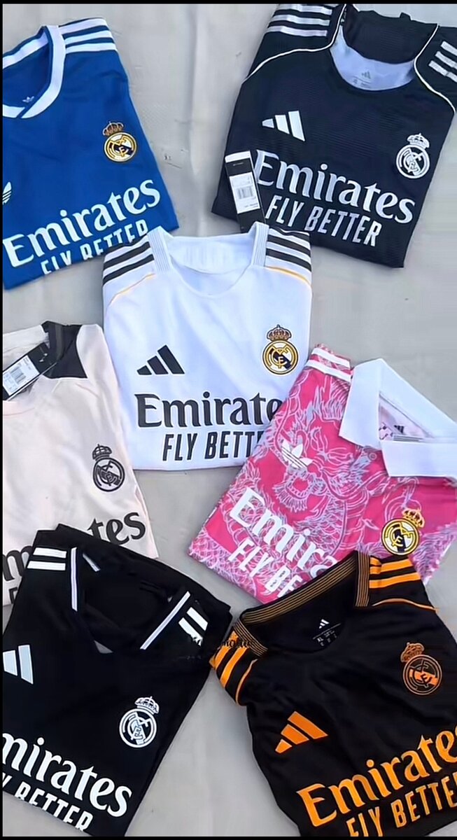 Découvrez nos maillots de football Real Madrid, parfaits pour les fans fervents. Confortables et aux designs variés, ils sont idéaux pour les matchs ou le quotidien. Exprimez votre passion pour le football !