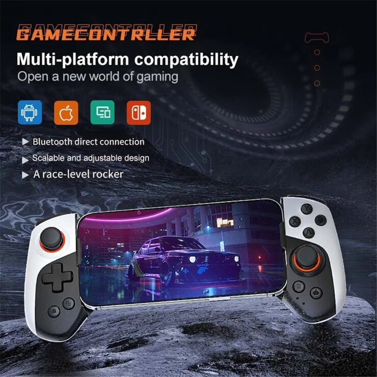 Transformez votre téléphone en console portable avec cette manette Bluetooth ajustable. Compatible multi-plateforme, elle offre une expérience de jeu immersive avec son rocker de précision. Idéale pour les téléphones de 136 à 184mm.