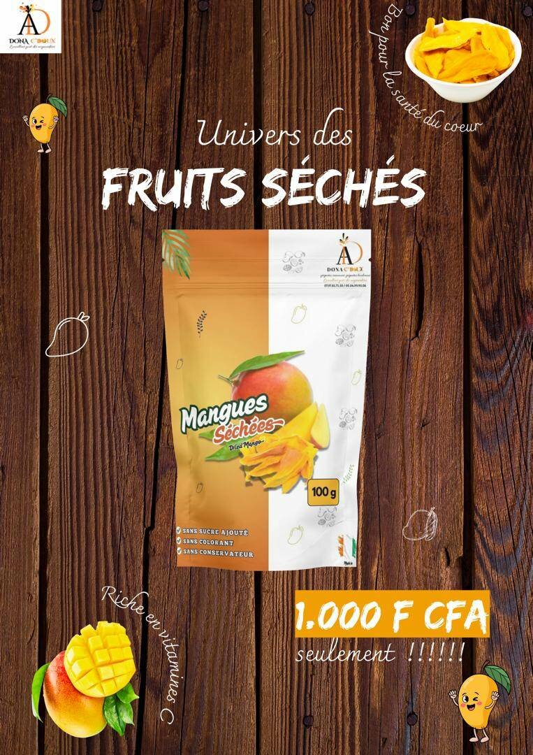 Découvrez nos mangues séchées, riches en vitamine C, parfaites pour une collation saine. Idéales pour les voyages ou au bureau. Savourez la douceur naturelle des fruits séchés à seulement 1,000 F CFA!