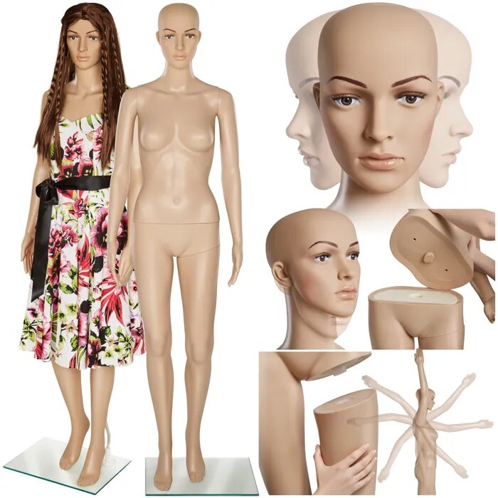 Mannequin réaliste pour vitrines, idéal pour présenter des vêtements femme. Tête interchangeable et posture réglable pour maximiser l'impact visuel. Robuste et stylé, parfait pour magasins de mode.