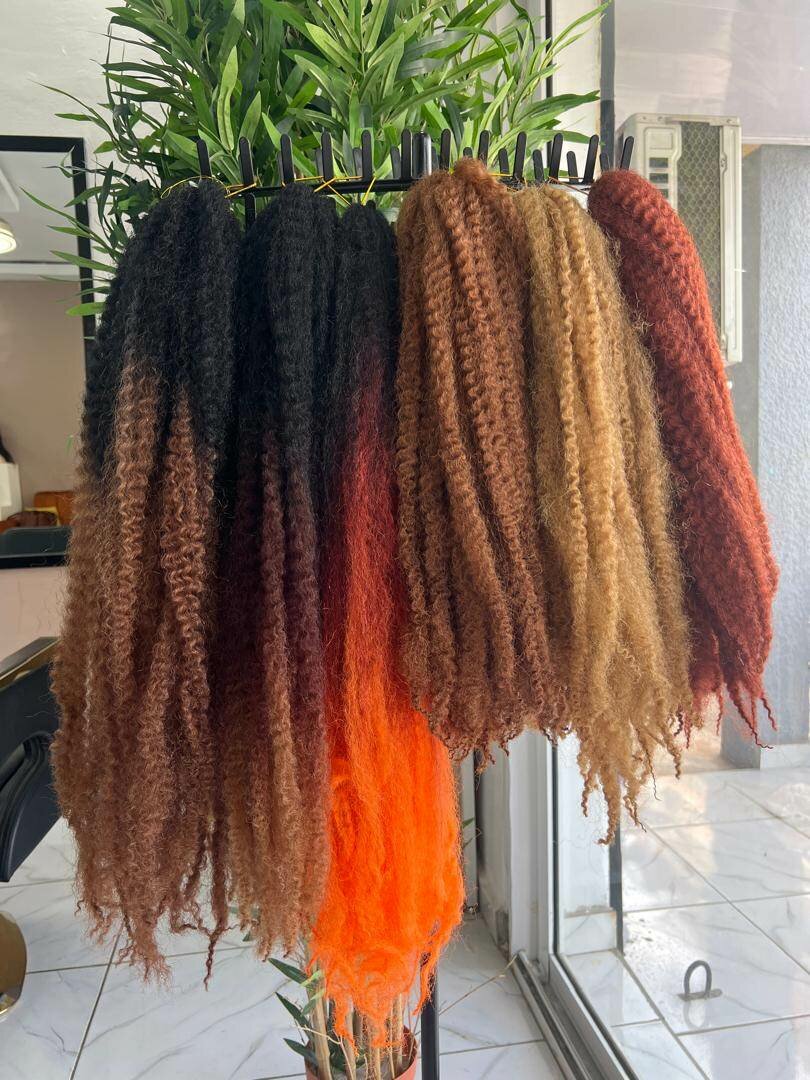 Mèche a tresser marley twist ombré 3ton disponible en plusieurs longueur et couleurs, il faut 4 a 5 pour une coiffure , elles prennent les boucles et l'eau chaude