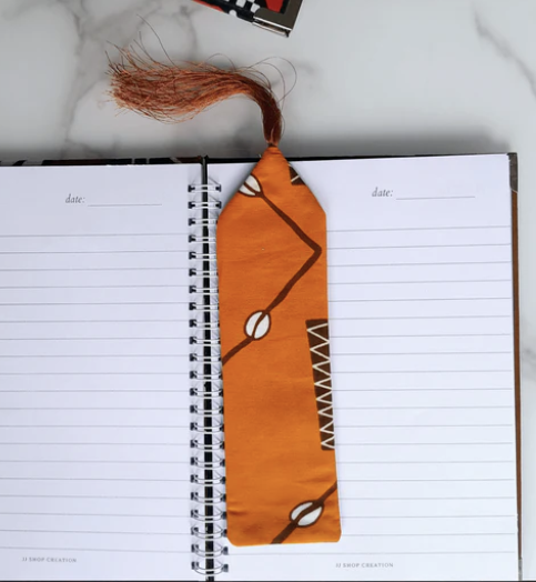 Ce marque-page en tissu pagne est l'accessoire parfait pour ne plus jamais perdre le fil de votre lecture. Glissé entre les pages dun livre, d'un carnet ou même d'un agenda, il vous permet de retrouver facilement votre dernière page lue, tout en ajoutant une touche de couleur et d'originalité.