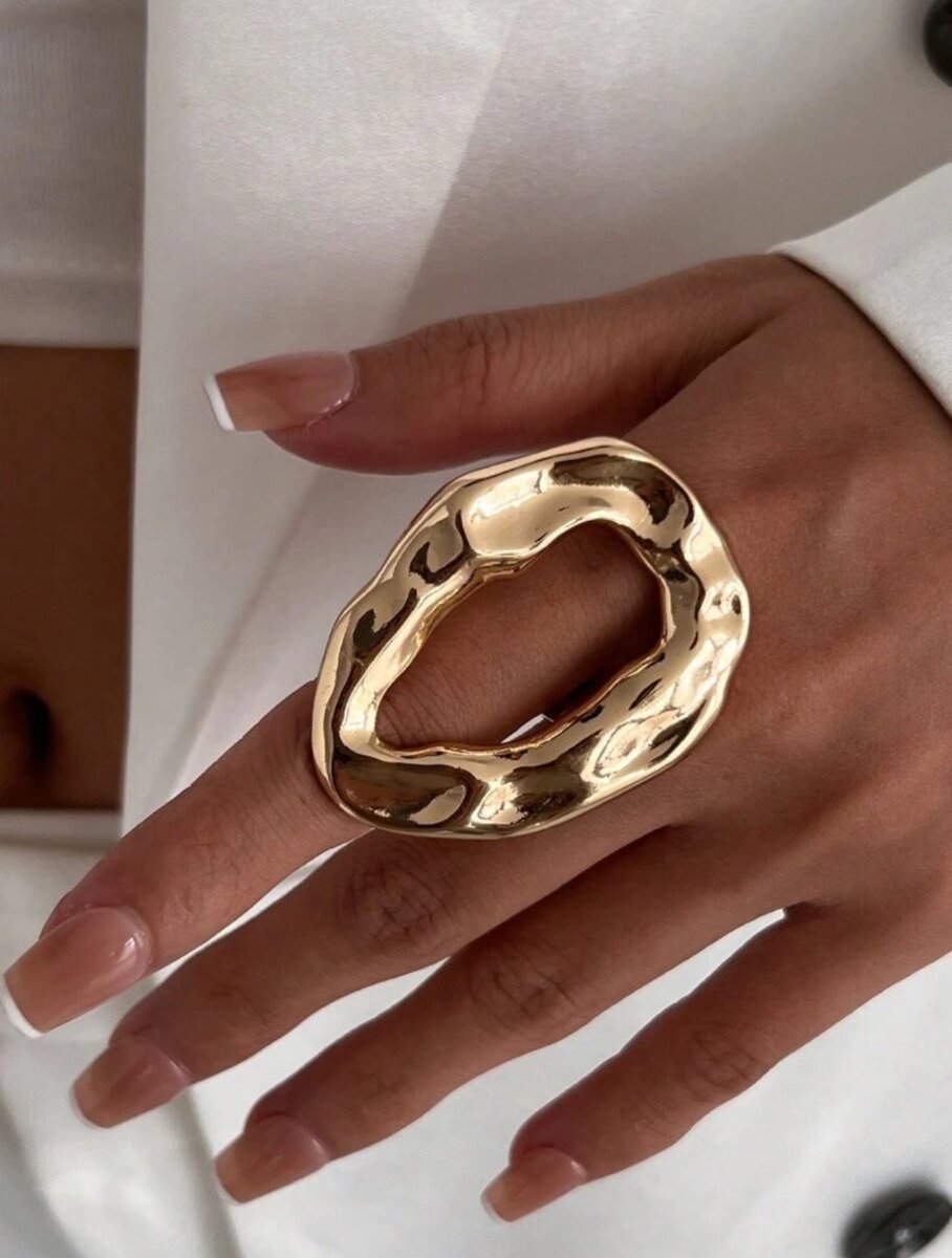 Avec son motif géométrique et sa finition dorée, cette bague est idéale pour celles qui aiment l'élégance contemporaine.