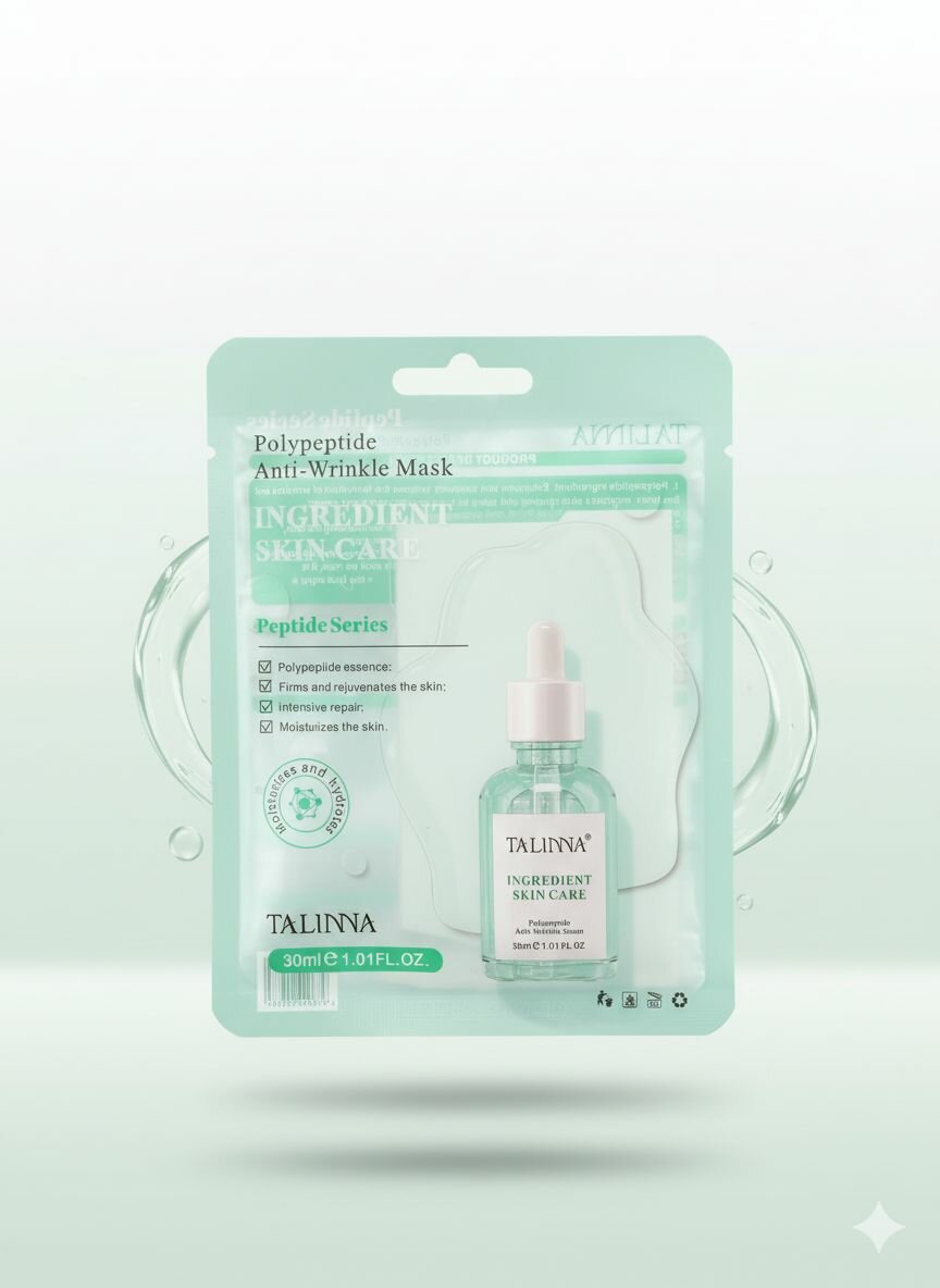 masque anti-rides TALINNA aux peptides, idéal pour une peau jeune et revigorée. Formule spéciale pour réduire visiblement les rides et améliorer l'élasticité. Parfait pour un soin de la peau en profondeur