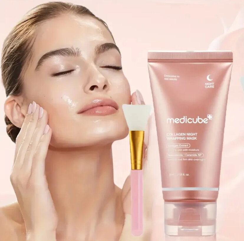 Découvrez le masque de nuit hydratant au collagène de medicube. Nourrit et régénère la peau pendant votre sommeil pour un teint éclatant. Facile à appliquer avec son pinceau.