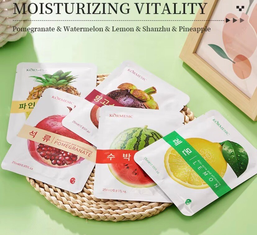 Découvrez les masques de visage KORMESIC pour une peau hydratée et revitalisée. Composés de divers extraits de fruits, ils nourrissent et illuminent votre peau. Idéal pour tous les types de peau.