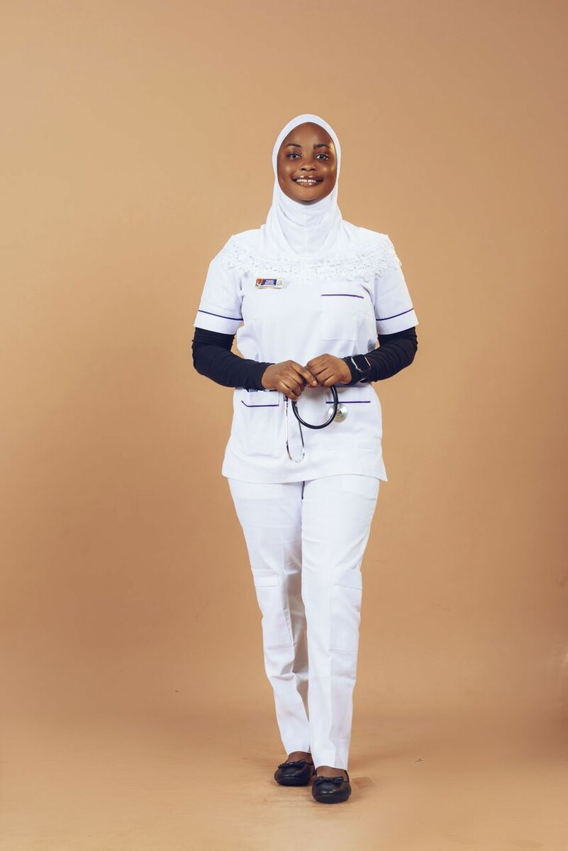 White Medical scrub uniforms... comes in sizes small- Large. Easy to wash and iron. Breathable and durable material texture.