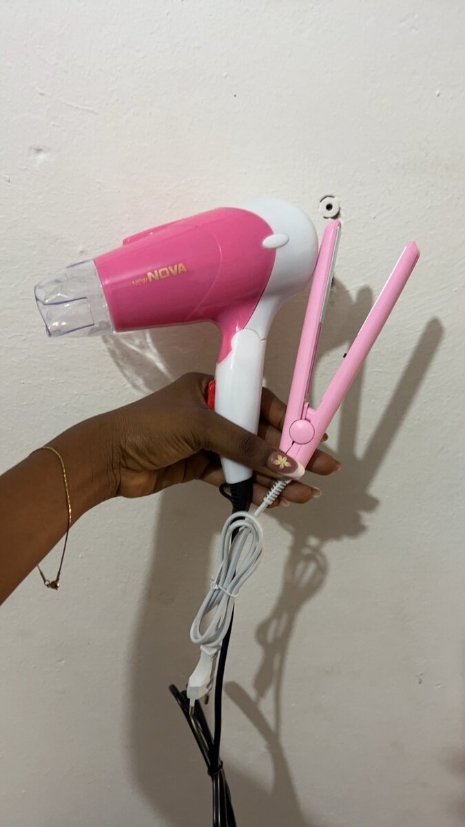Medium hair dryer and mini straightener