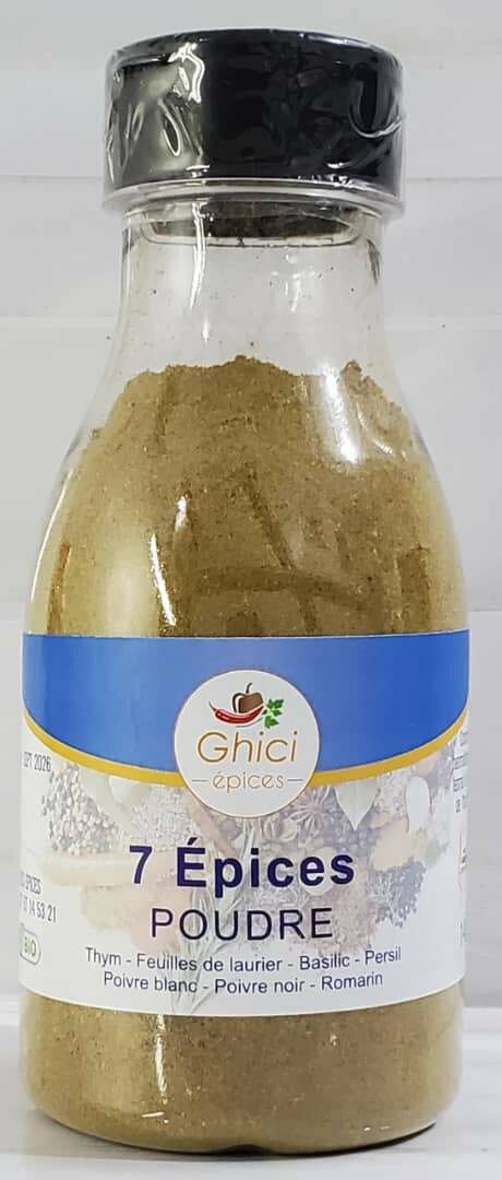 Découvrez le mélange de 7 épicés en Poudre pour rehausser vos plats. Parfait pour viandes, légumes et soupes. Savourez une explosion de saveurs avec du thym, laurier, basilic, persil, poivre blanc et romarin. Idéal pour tous vos besoins culinaires!