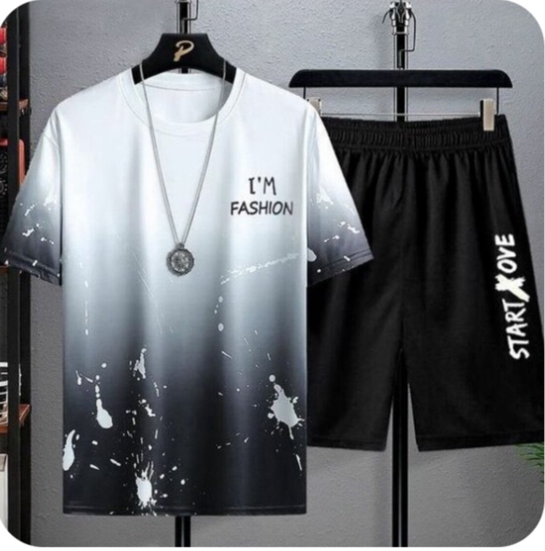 Sports Short Sleeve T-Shirt & Shorts Set - 2 Piece - White B