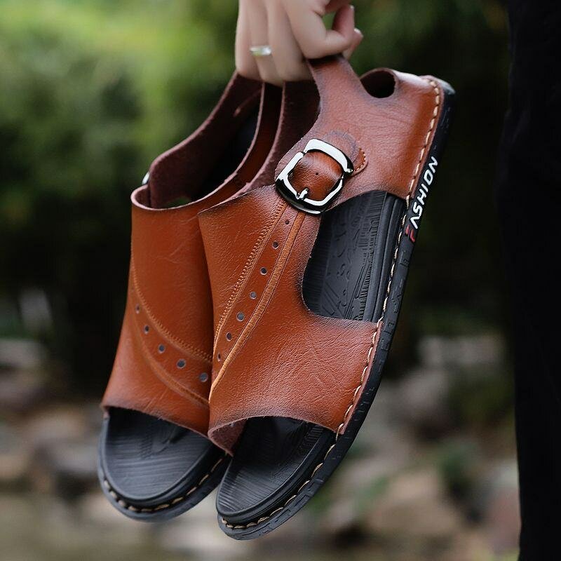 Pre-order, Dropshipping. Men's Genuine Leather Sandals: New Summer Dual-Use Casual Soft Leather Soft Sole High-Grade Driving Beach Shoes