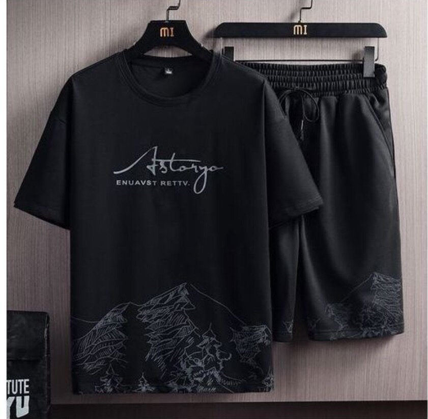 Type: Men's fashion Clothing material: Polyester Color: Black Features: breathable and comfortable T-shirt shorts