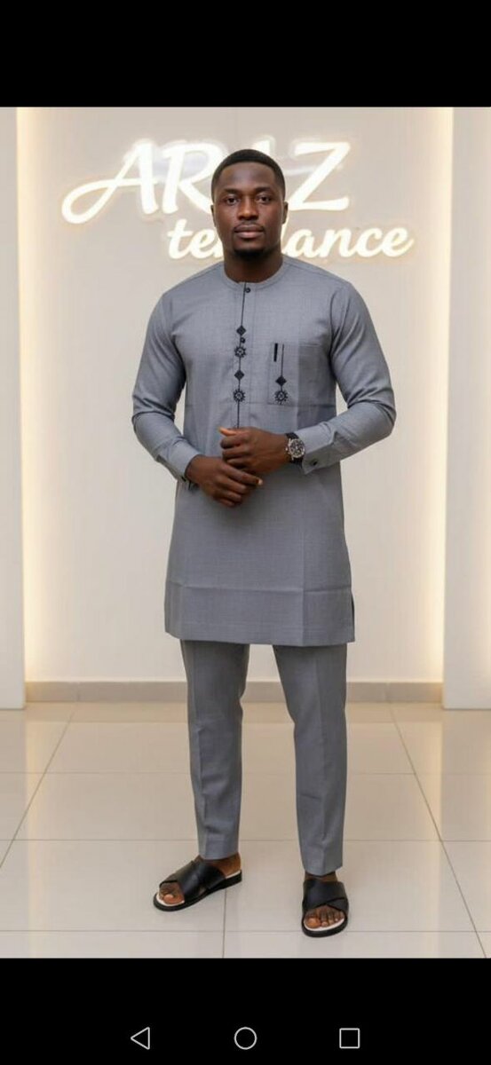 Elevate your style with this sleek gray African dashiki suit, perfect for formal occasions or cultural events. Made for the modern man, it combines traditional African fashion with contemporary design.