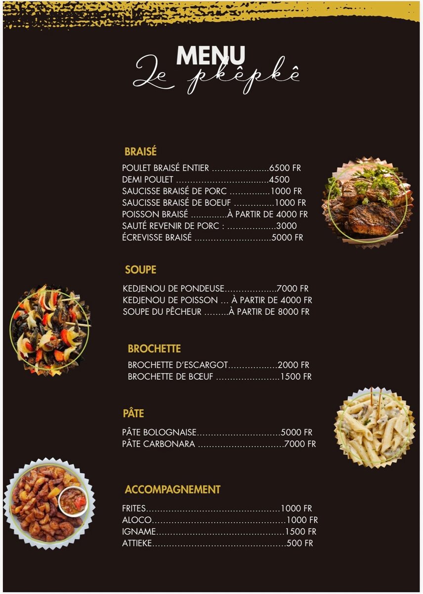 Menu de Restaurant Africain