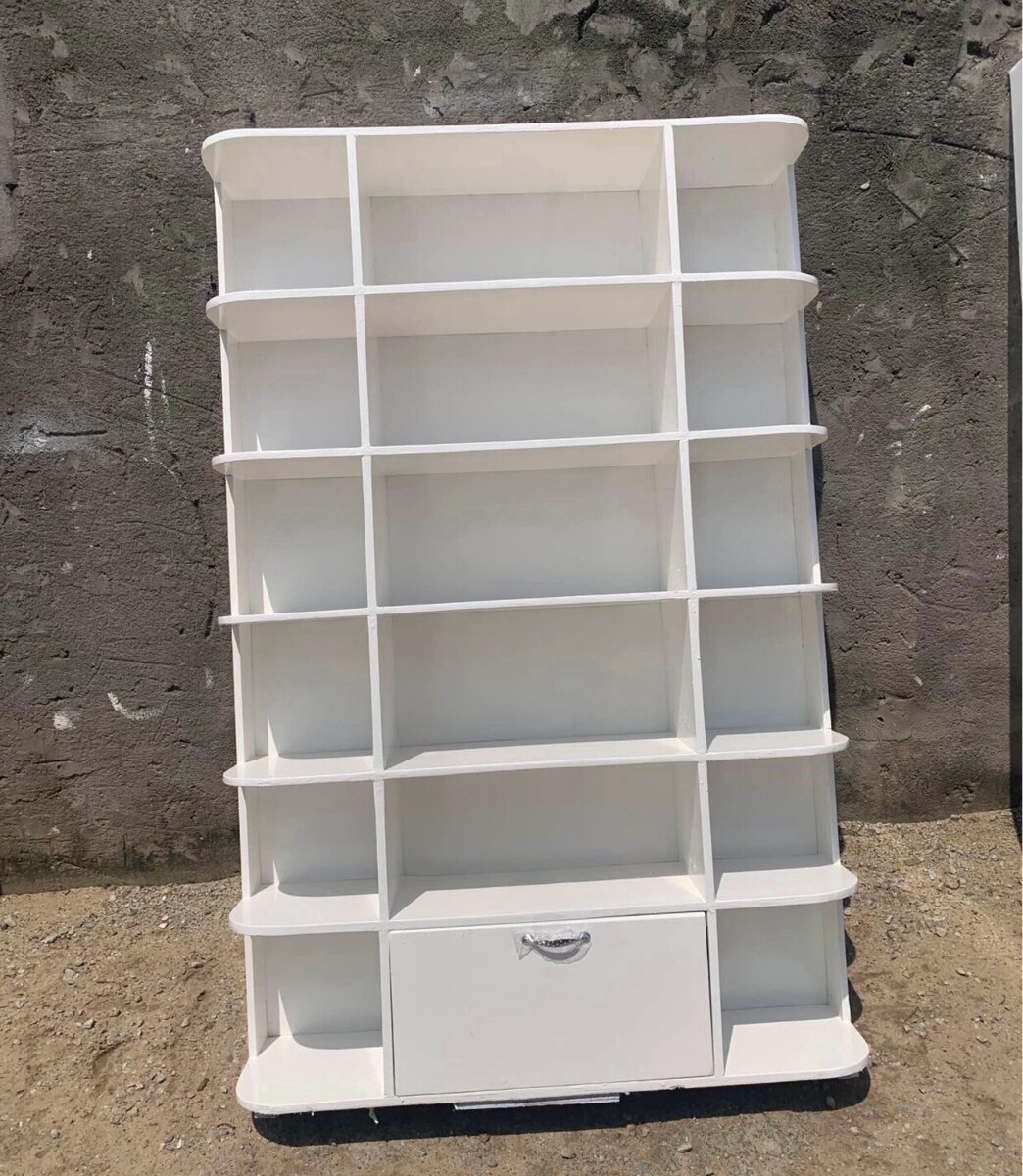 Optimisez votre espace avec ce meuble de rangement blanc multifonctionnel. Doté d'étagères ouvertes et de tiroirs, il est idéal pour organiser votre maison ou votre bureau. Robuste et élégant, il s'intègre parfaitement dans tout décor.