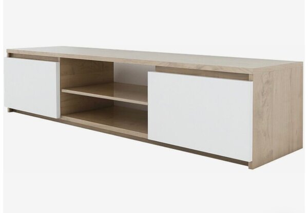 Ce meuble TV bas moderne est parfait pour organiser votre espace audiovisuel avec style. Avec son design épuré et ses finitions blanches et bois, il s'intègre facilement dans tout type de décoration intérieure. Doté de plusieurs tiroirs et compartiments, il offre un espace de rangement pratique pour vos appareils, câbles et accessoires. Solide et fonctionnel, il est idéal pour le salon ou la chambre.
