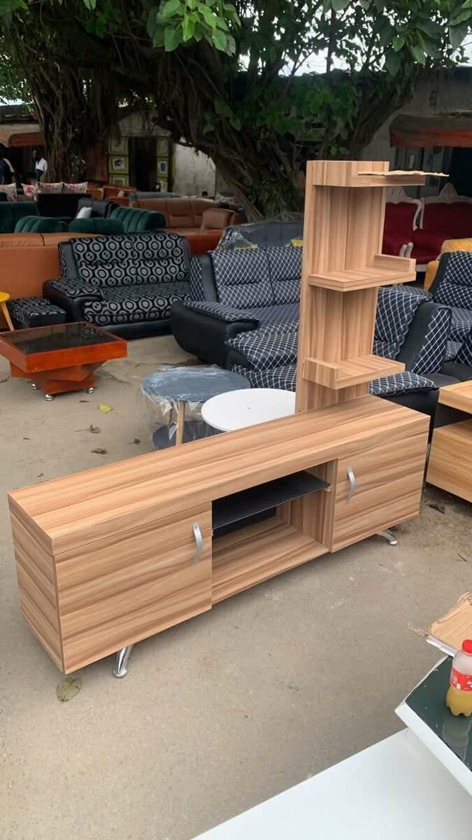 Ce meuble TV moderne en bois offre une solution de rangement élégante pour votre salon. Idéal pour organiser vos appareils et accessoires multimédias avec des étagères pratiques pour optimiser l'espace. Parfait pour un intérieur contemporain.