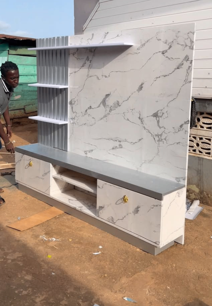 Transformez votre salon avec ce meuble TV design en marbre. Doté de rangements spacieux et étagères, il allie style et fonctionnalité. Idéal pour organiser vos appareils et décorations.