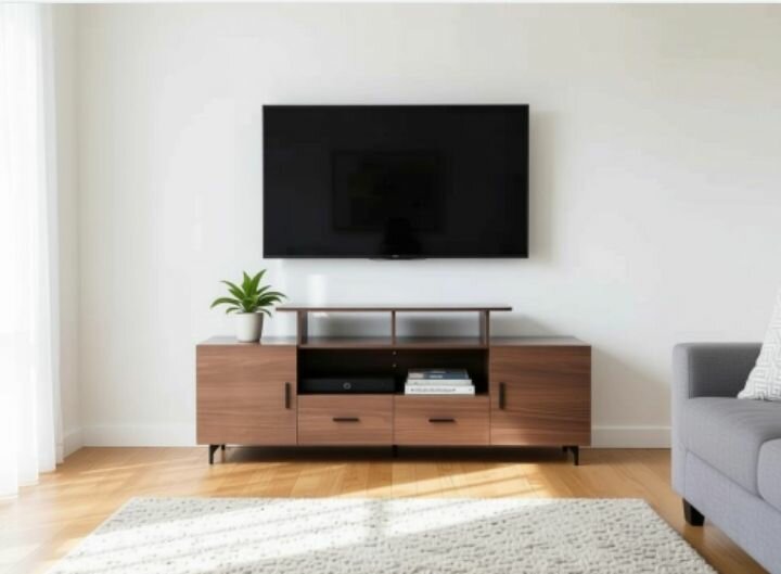 Ajoutez une touche élégante à votre salon avec ce meuble TV en bois moderne et fonctionnel. Doté de plusieurs compartiments pour un rangement optimal, il est parfait pour organiser vos appareils multimédia et accessoires. Idéal pour un espace de vie contemporain.