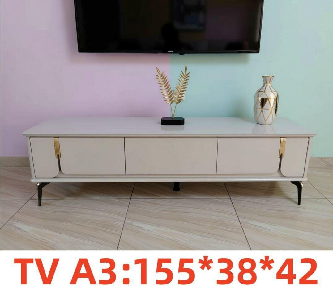 Élégant meuble TV blanc 155x38x42 cm, idéal pour un salon contemporain. Offrant un design épuré et des rangements pratiques, ce meuble stylisé est parfait pour organiser votre espace tout en ajoutant une touche moderne.