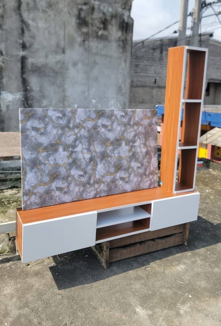 Ce meuble TV moderne en bois est idéal pour organiser votre espace de divertissement. Avec ses étagères ouvertes et fermées, il offre un rangement polyvalent. Parfait pour le salon.