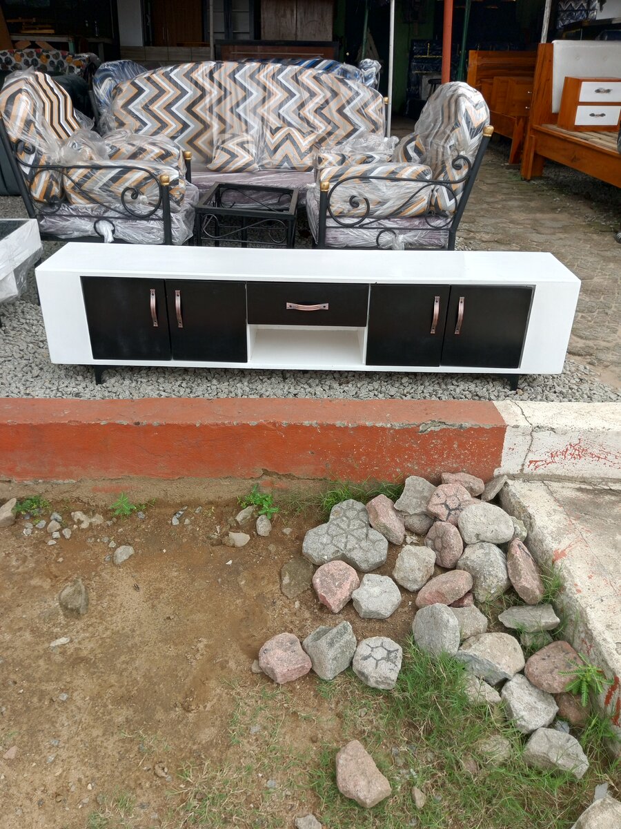 Meuble TV moderne et élégant avec finition noire et blanche, idéal pour le salon. Compact et fonctionnel, parfait pour ranger vos accessoires audio-vidéo. Améliorez votre intérieur avec ce design contemporain.
