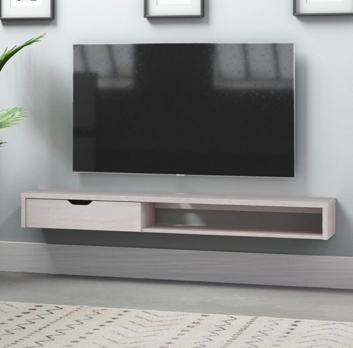 Ce meuble TV mural élégant est parfait pour optimiser votre espace de vie moderne. Avec son design épuré et sa finition en bois clair, il ajoute une touche de sophistication à toute pièce. Idéal pour le salon, il offre une étagère pratique et un tiroir pour ranger vos accessoires TV. Transformez votre espace avec ce meuble fonctionnel qui convient à toutes les tailles de téléviseurs.