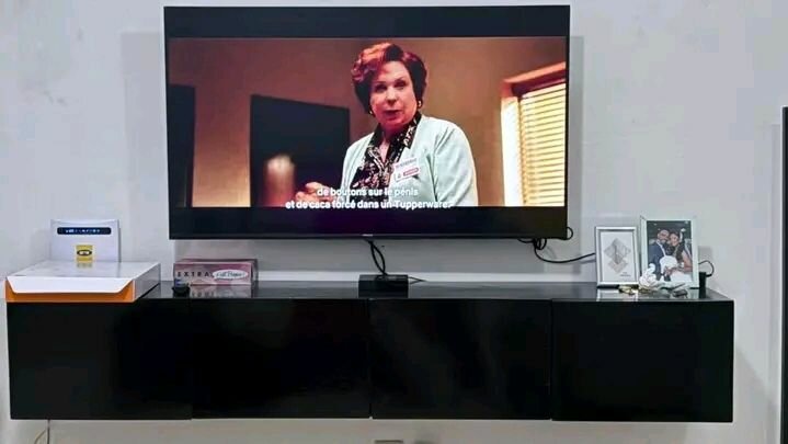Meuble TV mural en noir brillant, idéal pour une installation discrète et élégante sous votre téléviseur. Fabriqué pour s'adapter parfaitement à votre espace de vie.