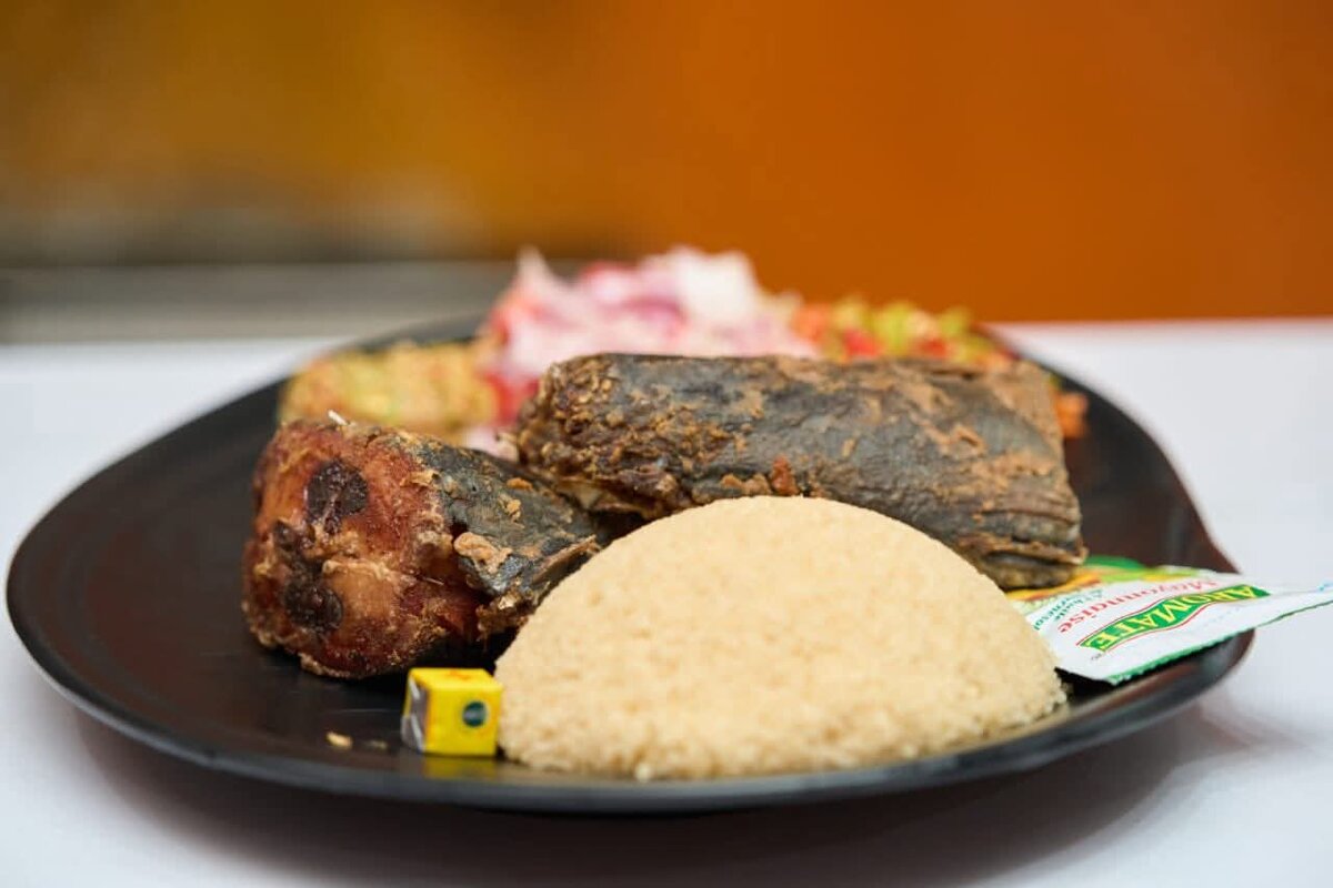 Savourez ce plat exquis de poisson frit accompagné de son manioc moelleux. Parfait pour un repas authentique et nourrissant, idéal pour les amateurs de cuisine africaine. Profitez des saveurs riches et des arômes délicats qui éveilleront vos sens.