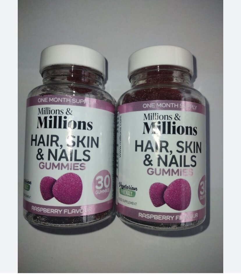 Millions & Millions Skin, Hair & Nails Gummies contain Biotin, Zinc and Folic Acid for healthy skin, hair, and nails. Biotin contributes to the maintenance of normal hair, helping you to maintain healthy hair. It also encourages healthy skin; Biotin supports the body in maintaining normal mucus membranes and helps to keep the skin healthy