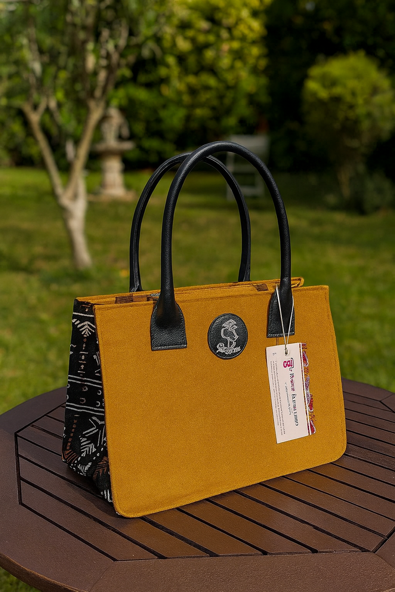 Sac ethnique melange de toile de jute et simili cuir et wax Dimension 26/20/8