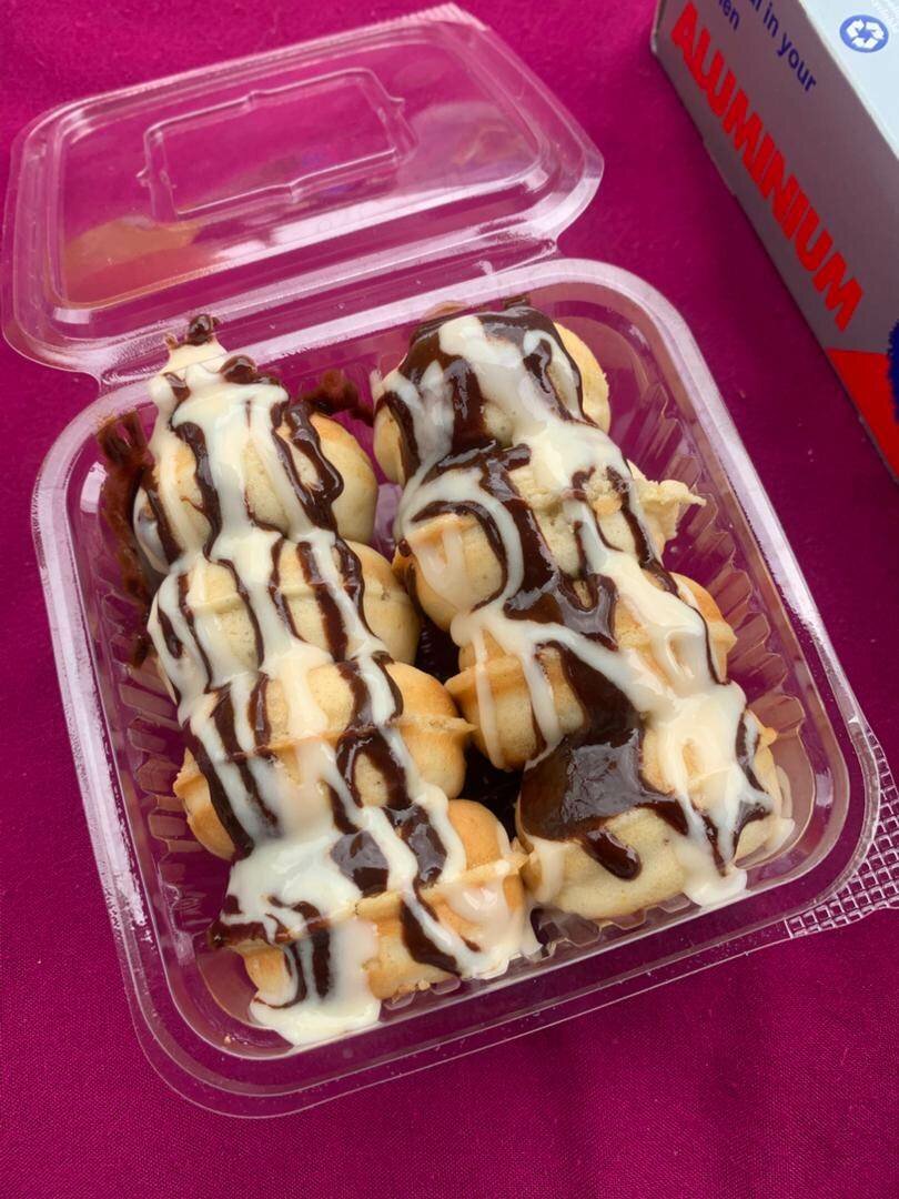 Profitez de ces choux gourmands, garnis d'une décadente sauce chocolat accompagne d'une sauce chocolat la blanc . Parfaits pour une pause sucrée ou une fête, ces délices raviront vos papilles.