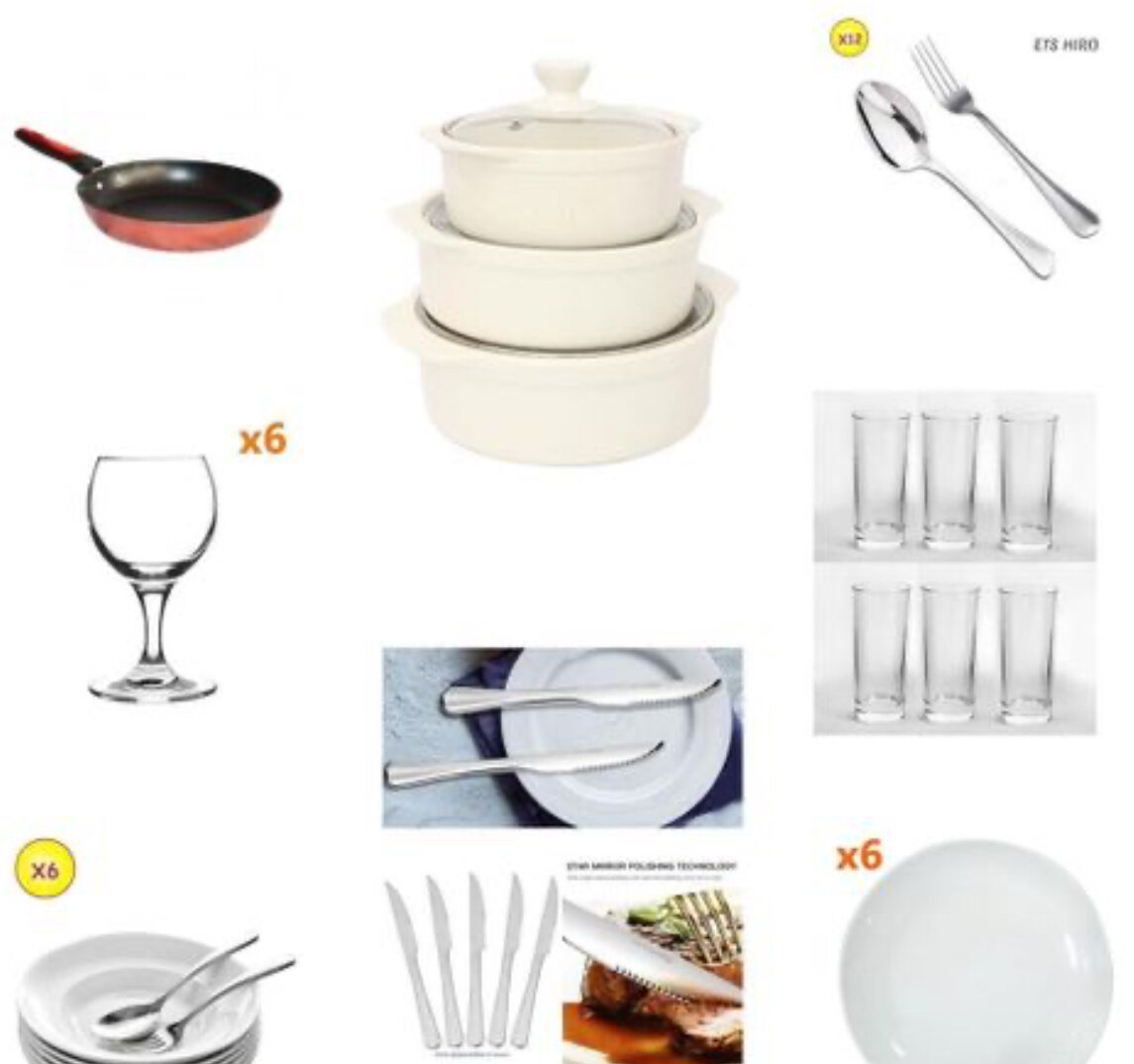 Quantité : 6 Assiettes, 6 Cuillères et 6 Fourchettes