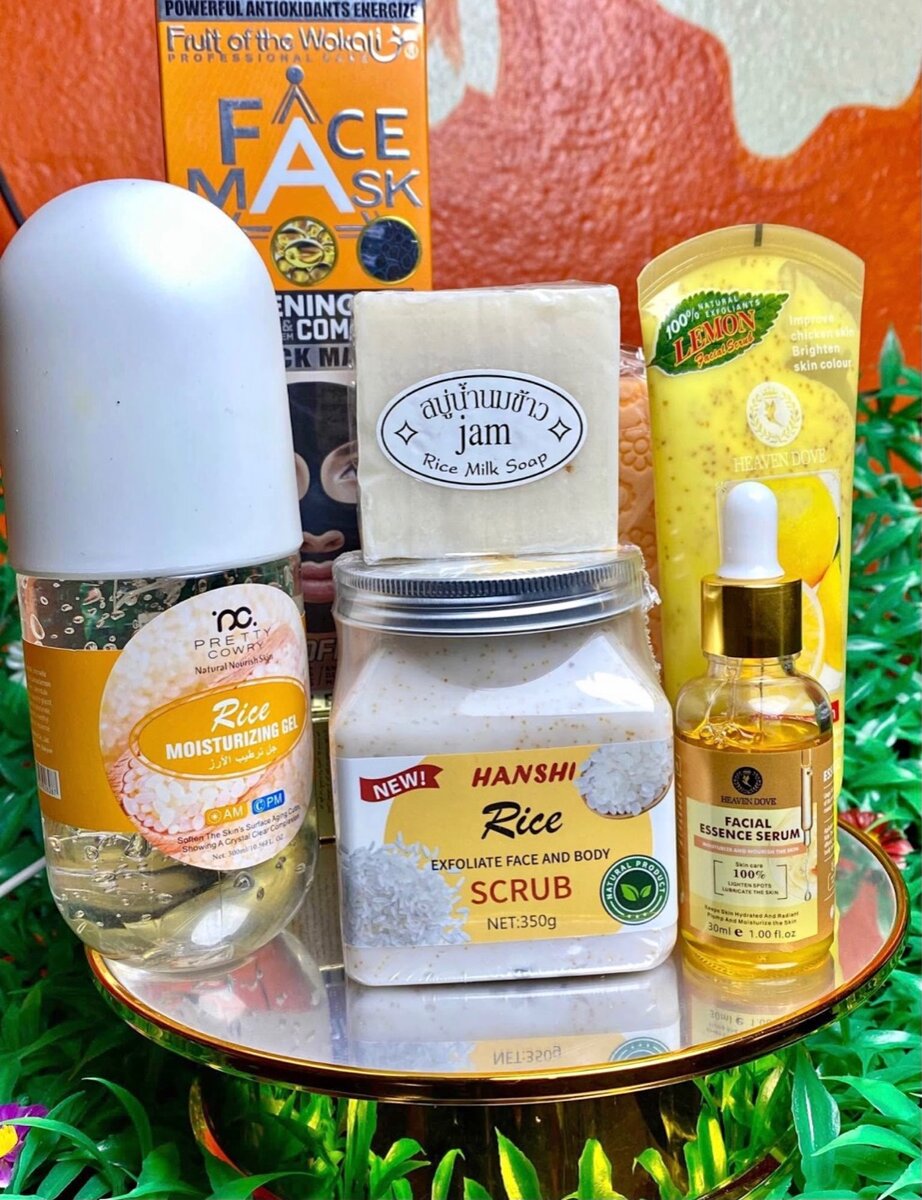 Découvrez notre ensemble de soins visage au riz, idéal pour une peau éclatante. Inclut un masque, un savon au lait de riz et un sérum nourrissant. Parfait pour une routine complète et naturelle.
