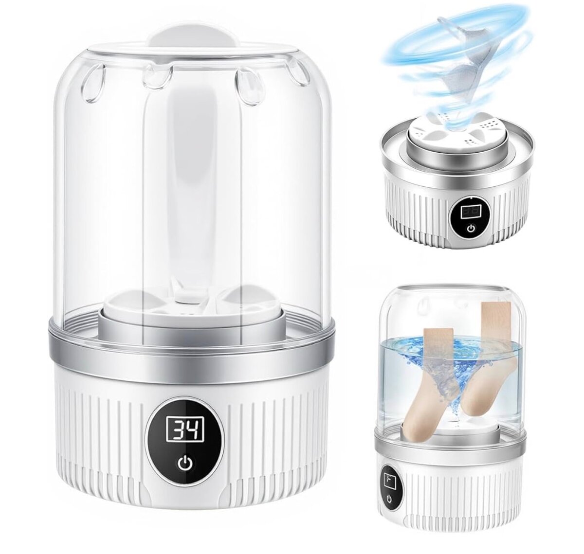 Lave-linge compact et autonome pour le linge délicat. Facile à utiliser, idéal pour les voyages ou la maison.