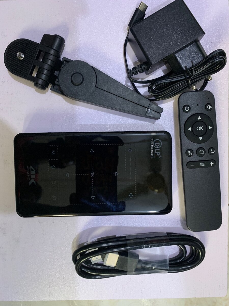 Mini portable 4k projector Rom 8GB RAM 1GB HDMI input 2x USB port Aux port SD card port Inbuilt Rechargeable battery 4000mah