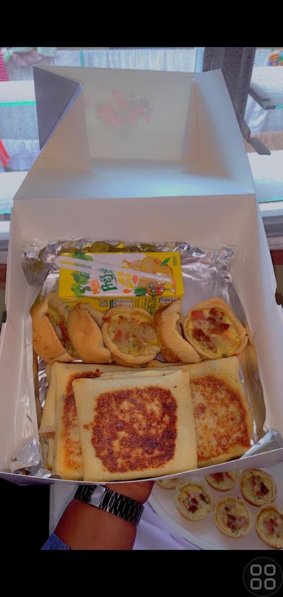 Découvrez notre boîte délicieuse d'assortiment de mini pizzas garnies de légumes frais et de crêpes dorées à la perfection. Accompagné d'une boisson fruitée