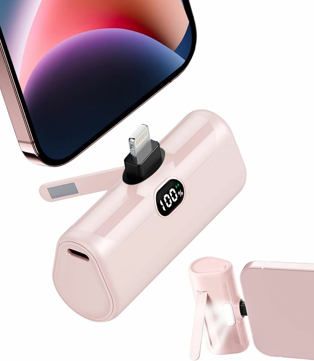 Chargeur portable USB-C et Lightning, idéal pour tous les smartphones. Pratique et compact avec affichage LED de batterie. Idéal pour voyages et déplacements.