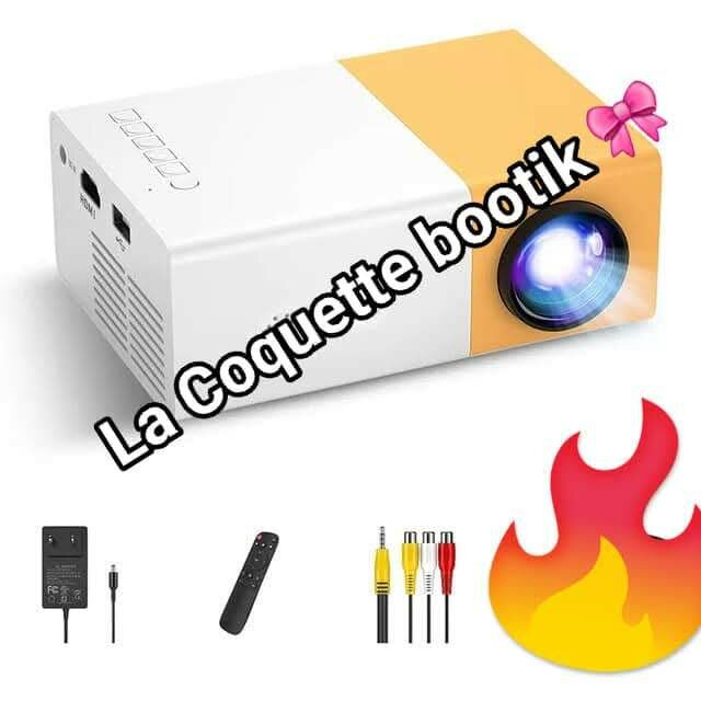 Mini projecteur, idéal pour les soirée cinéma a la maison sur un mur blanc de préférence pour une bonne luminosité. Vois pouvez le connecter via un câble HDMI via canal ou une clé usb ou un ordinateur